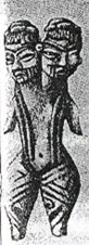 | Fig. 1: Escultura olmeca ( 1800 a .C.) una de las numerosas representaciones encontradas de bicefalia con micro de miembros superiores y macromelia de inferiores. |